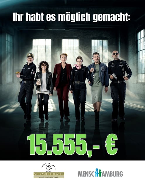 Die Besucherinnen und Besucher des St. Pauli Theaters reagierten überwältigend: Innerhalb kürzester Zeit kam die beeindruckende Spendensumme von 15.555 Euro zusammen. Sie fließt vollständig in die gemeinnützige Arbeit des Vereins.